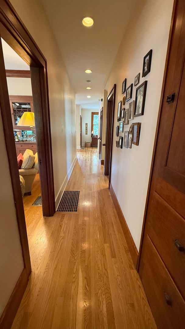 • Main Floor: Bright hardwoods throughout, elegant living room with a full-sized piano, large dining room, and a chef’s kitchen stocked with all cookware, utensils, and linens provided. Step outside to a private back deck overlooking a generous, fully fenced yard. Detached garage just off the backyard. The bedroom on the main floor is set up as a nice private TV room.