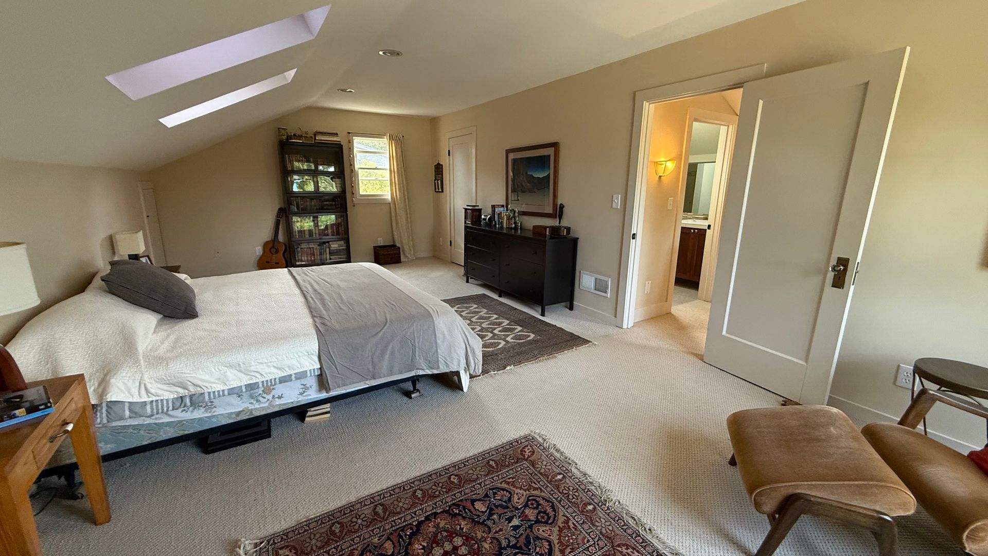 • Upstairs: Expansive primary suite with skylights, a walk-in closet, and a full private bathroom.